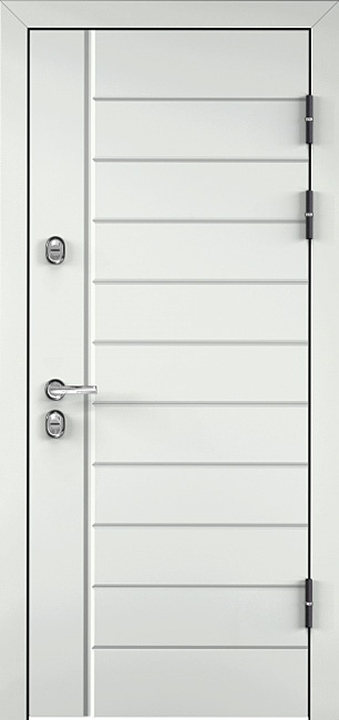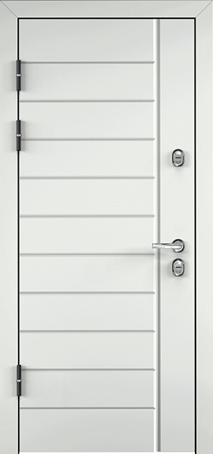 Эта белоснежная входная дверь с линиями №30 станет стильным и надежным элементом для любого интерьера. Благодаря отделке из панелей МДФ с ПВХ-покрытием, дверь выглядит элегантно и обладает высокой устойчивостью к внешним повреждениям. Внешний вид дверного полотна дополнен утонченными линиями, что придает ей современный, лаконичный вид. Прочный каркас из профильных труб 50х25 мм и лист металла толщиной 2 мм обеспечивают отличную защиту и долгий срок службы. Два контура резинового уплотнителя эффективно защищают от шума и холода, создавая комфорт в помещении. Замки Просам и Мосрентген с тремя ригелями гарантируют надежную безопасность. Дополнительно можно заказать зеркала, стеклопакеты и кованые элементы, что делает дверь универсальной для разных дизайнерских решений. Квартирная дверь входная белоснежного цвета с линиями №30 от производителя: быстрое изготовление и монтаж в Фрязино, индивидуальные размеры, широкий выбор материалов и фурнитуры, официальная гарантия до 10 лет.