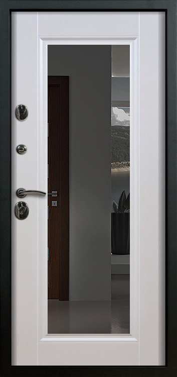Металлическая входная дверь с зеркалом внутри №1 создана как универсальное решение для дома, квартиры или офиса, где важны и безопасность, и комфорт. Каркас выполнен из прочной профильной трубы с металлическим листом толщиной 2 мм и рёбрами жёсткости, что обеспечивает устойчивость к механическим воздействиям и долгий срок службы. Снаружи дверь покрыта порошковой окраской, стойкой к атмосферным влияниям и царапинам, а изнутри отделана МДФ с ПВХ-покрытием, которое сохраняет свежий вид даже при интенсивной эксплуатации. Встроенное зеркало превращает полотно в практичный элемент интерьера: оно визуально расширяет пространство прихожей и избавляет от лишних предметов мебели. Два контура уплотнителей защищают от пыли и сквозняков, а блокираторы усиливают общую надёжность конструкции. Модель не оснащена терморазрывом, зато отличается продуманным балансом практичности и доступной цены, оставаясь удобным вариантом для повседневного использования. Металлическая входная дверь с зеркалом внутри №1 от производителя: быстрое изготовление и монтаж в Фрязино, индивидуальные размеры, широкий выбор материалов и фурнитуры, официальная гарантия до 10 лет.