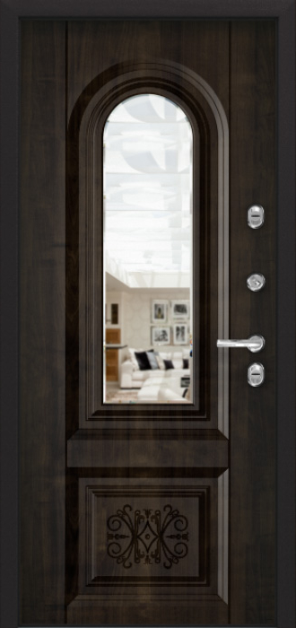 Дверь тёплая входная в частный дом №49 создана для тех, кто ценит надёжность и практичность без лишних компромиссов. Конструкция из профильных труб и стали толщиной 2 мм обеспечивает прочность и устойчивость к взлому, а двойной контур уплотнителя защищает от сквозняков и влаги. Особенность модели — встроенное зеркало, которое не только добавляет удобства, но и визуально расширяет пространство прихожей. Снаружи и внутри дверь отделана МДФ-накладками, материалом, который хорошо переносит повседневные нагрузки, не боится царапин и сохраняет привлекательный вид долгие годы. Замковая система сочетает сувальдный и цилиндровый механизмы от российских производителей, что делает вход максимально безопасным. Модель подходит для установки как в частный дом, так и в квартиру или офис, а возможность комбинировать отделку и дополнять конструкцию стеклопакетами или ковкой открывает простор для индивидуального дизайна. Дверь теплая входная в частный дом №49 от производителя: быстрое изготовление и монтаж в Фрязино, индивидуальные размеры, широкий выбор материалов и фурнитуры, официальная гарантия до 10 лет.