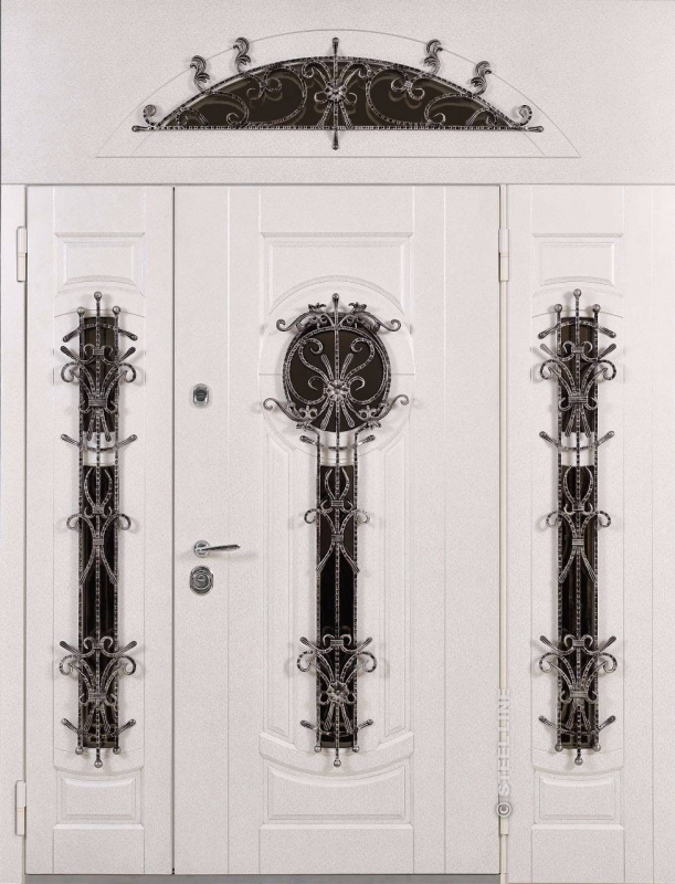 Входная дверь с кованой ручкой и фрамугой №6 представляет собой элегантное и надежное решение для тех, кто ценит не только безопасность, но и стиль. Эта модель идеально подойдет для оформления парадных входов в дома и офисы. Внешняя отделка из плиты МДФ придает двери современный и чистый вид, который сохраняется долго благодаря стойкости к внешним воздействиям. Благодаря профильной трубе с толщиной металла 2 мм и ребрам жесткости, конструкция двери гарантирует прочность и долговечность. Дополнительный элемент — кованая ручка, которая добавляет изысканности и подчеркивает высокий класс изделия. Стандартная комплектация не включает шумо- и теплоизоляцию, однако она может быть установлена по желанию. Резиновый уплотнитель с двумя контурами обеспечит хорошую герметичность, защищая от ветра и пыли. Подходит для установки как в частных домах, так и в офисах, привлекая внимание своим необычным и стильным дизайном. Входная дверь с кованой ручкой и фрамугой №6 от производителя: быстрое изготовление и монтаж в Фрязино, индивидуальные размеры, широкий выбор материалов и фурнитуры, официальная гарантия до 10 лет.