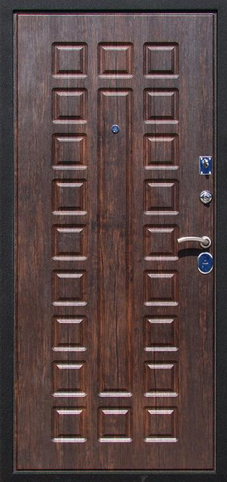 Входная дверь в квартиру ширина стандарт №41 создана как универсальное решение для городских квартир, частных домов и офисных помещений. Конструкция на основе профильной трубы и листа стали толщиной 2 мм обеспечивает прочность и устойчивость к взлому, а рёбра жёсткости добавляют дополнительную надёжность. С обеих сторон дверь облицована плитами МДФ, которые придают поверхности аккуратный внешний вид и защищают её от мелких повреждений. Такой вариант отделки отличается практичностью: панели устойчивы к влаге, сохраняют форму и цвет, даже если дверь эксплуатируется ежедневно. Два контура резиновых уплотнителей не дают проникнуть сквознякам и уличному шуму, а терморазрыв в коробке и полотне препятствует промерзанию в холодное время года. Благодаря стандартной ширине установка не требует сложных подготовительных работ, а при необходимости дверь может быть изготовлена в индивидуальном размере. Входная дверь в квартиру ширина стандарт №41 от производителя: быстрое изготовление и монтаж в Фрязино, индивидуальные размеры, широкий выбор материалов и фурнитуры, официальная гарантия до 10 лет.