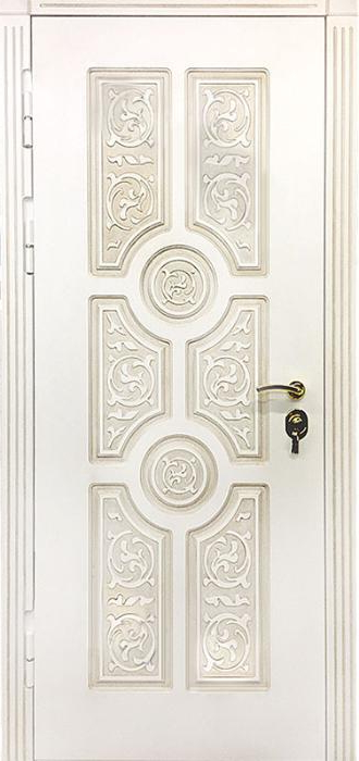 Дверь уличная с терморазрывом №49 — это надежное решение для частных домов и коттеджей, которое обеспечит комфорт и защиту от внешних факторов. С терморазрывом в коробке и полотне, эта дверь исключает проникновение холода, сохраняя тепло в доме и предотвращая появление конденсата. Внешняя и внутренняя отделка выполнена с использованием накладки МДФ, что придает двери привлекательный вид и долговечность, стойкость к механическим повреждениям и атмосферным воздействиям. Ковка, как элемент декора, добавляет изысканности и подчеркивает индивидуальность. Металлическая конструкция с толщиной полотна 1,5 мм и каркасом из профильных труб гарантирует прочность и устойчивость. Уплотнение с тремя контурами магнитного герметика и высокая шумо- и теплоизоляция на основе пенопласта делают дверь идеальной для использования в уличных условиях. Возможность замены замков и добавления стеклопакетов или кованых элементов позволяет индивидуализировать дверное решение под любые потребности. Дверь уличная с терморазрывом №49 от производителя: быстрое изготовление и монтаж в Фрязино, индивидуальные размеры, широкий выбор материалов и фурнитуры, официальная гарантия до 10 лет.