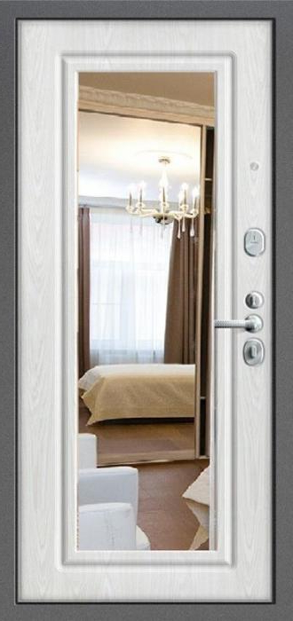Белый цвет придаёт этой модели лёгкость и универсальность, а зеркало на внутренней стороне делает её особенно удобной для квартир и офисов, где важно сочетать практичность и эстетику. Дверь входная металлическая белая с зеркалом №51 изготовлена на основе прочного стального каркаса с листом металла толщиной 2 мм и усилена рёбрами жёсткости, что обеспечивает надёжность и долговечность. Плиты МДФ во внутренней и внешней отделке устойчивы к повреждениям и сохраняют аккуратный вид даже при интенсивном использовании. Два контура уплотнения помогают удерживать тепло и блокировать сквозняки, а пара замков — сувальдный Просам и цилиндровый Мосрентген — обеспечивают высокий уровень защиты. Зеркальная вставка экономит пространство и визуально расширяет коридор, делая дверь не только защитной, но и функциональной частью интерьера. Дверь входная металлическая белая с зеркалом №51 от производителя: быстрое изготовление и монтаж в Фрязино, индивидуальные размеры, широкий выбор материалов и фурнитуры, официальная гарантия до 10 лет.