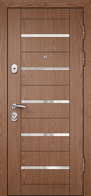 Входная дверь с зеркальным полотном №53 выделяется тем, что зеркало занимает почти всю внутреннюю поверхность, превращая дверь не просто в защитный элемент, а в полноценную часть интерьера. Такое решение особенно удобно для квартир и офисов, где зеркало необходимо ежедневно, а отдельное место для него найти непросто. Каркас изготовлен из профильной трубы и усилен рёбрами жёсткости, стальной лист толщиной 2 мм обеспечивает прочность и устойчивость к нагрузкам. В отделке использованы панели МДФ с ПВХ-покрытием, которые стойко переносят повседневные испытания и сохраняют внешний вид долгие годы. Два контура уплотнения защищают от сквозняков и уличного шума, а возможность выбрать размеры и направление открывания позволяет адаптировать модель для частных домов и городских квартир. Входная дверь с зеркальным полотном №53 от производителя: быстрое изготовление и монтаж в Фрязино, индивидуальные размеры, широкий выбор материалов и фурнитуры, официальная гарантия до 10 лет.