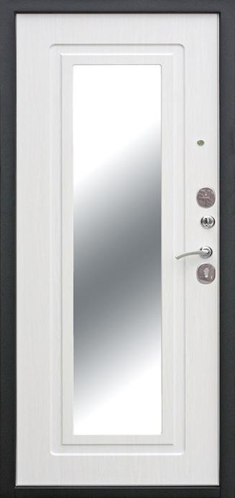 Надёжность металлической двери всегда в приоритете, но когда она получает дополнительное оснащение, результат становится особенно удобным. Входная дверь с зеркалом №78 удачно объединяет прочность конструкции и практичность деталей: массивный каркас из профильной трубы, лист стали толщиной 2 мм и усиленные рёбра жёсткости формируют крепкий защитный барьер, а зеркало на внутренней стороне делает её частью интерьера, экономя место и добавляя визуального простора. Снаружи используется молотковое напыление, устойчивое к царапинам и погодным перепадам, благодаря чему дверь подходит как для квартиры, так и для частного дома. Внутренняя отделка выполнена плитой МДФ, которая выглядит стильно и сохраняет аккуратность даже при активной эксплуатации. Два контура уплотнения помогают защитить помещение от сквозняков, а при необходимости конструкцию можно дополнить шумоизоляцией, современными замками и даже видеодомофоном. Входная дверь с зеркалом №78 от производителя: быстрое изготовление и монтаж в Фрязино, индивидуальные размеры, широкий выбор материалов и фурнитуры, официальная гарантия до 10 лет.
