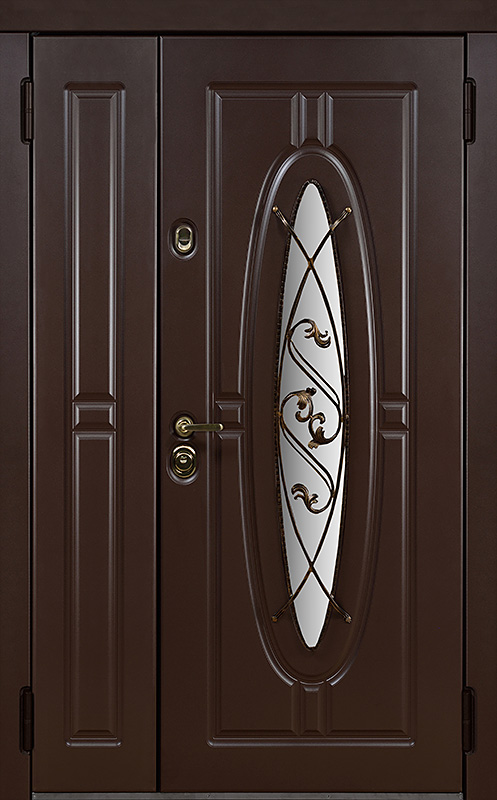 Двойная уличная дверь с овальным стеклом и художественной ковкой №14 — это уникальное сочетание функциональности и эстетики. Панели МДФ с ПВХ-покрытием, используемые как для внешней, так и для внутренней отделки, обладают высокой стойкостью к внешним воздействиям, сохраняя свой внешний вид на долгие годы. Внешний декор в виде художественной ковки придаёт двери особый шарм, подчеркивая её стиль и индивидуальность. Двойная уличная дверь с овальным стеклом и художественной ковкой №14 от производителя: быстрое изготовление и монтаж в Фрязино, индивидуальные размеры, широкий выбор материалов и фурнитуры, официальная гарантия до 10 лет.