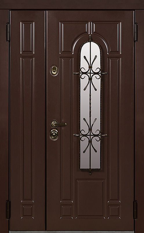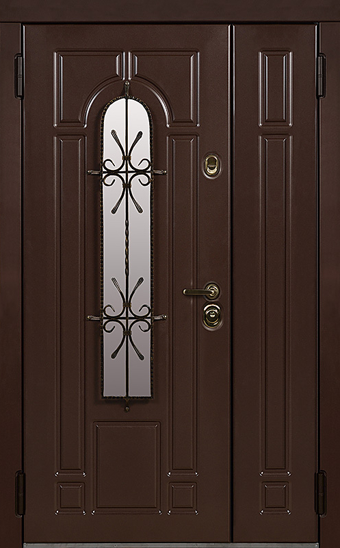 Эта металлическая двухстворчатая дверь с арочным стеклопакетом №15 представляет собой идеальный баланс между эстетикой и прочностью. Арочное стекло добавляет в её дизайн утончённость, а ковка в декоре придаёт изысканный, но в то же время крепкий и надёжный вид. Плита МДФ, используемая как для внешней, так и для внутренней отделки, не только сохраняет прекрасный внешний вид, но и устойчива к механическим повреждениям. Металлическая двухстворчатая дверь с арочным стеклопакетом №15 от производителя: быстрое изготовление и монтаж в Фрязино, индивидуальные размеры, широкий выбор материалов и фурнитуры, официальная гарантия до 10 лет.