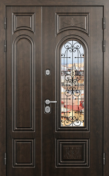 Двупольная стальная дверь со стеклопакетом и кованым узором №24 станет отличным выбором для тех, кто ценит не только безопасность, но и стиль. Внешняя и внутренняя отделка выполнены из МДФ, что придает двери элегантный и современный вид, а также обеспечивает высокую устойчивость к механическим повреждениям и износу. Стеклопакет и кованые элементы добавляют изысканности и уникальности, при этом сохраняя прочность конструкции. Двупольная стальная дверь со стеклопакетом и кованым узором №24 от производителя: быстрое изготовление и монтаж в Фрязино, индивидуальные размеры, широкий выбор материалов и фурнитуры, официальная гарантия до 10 лет.