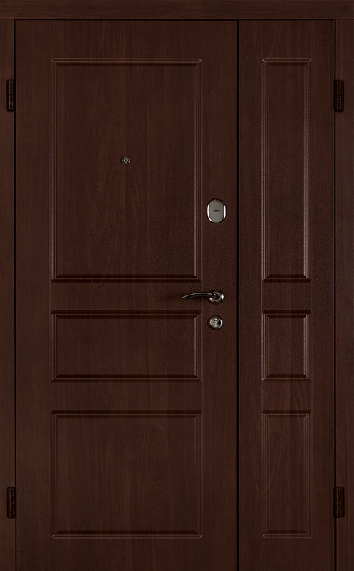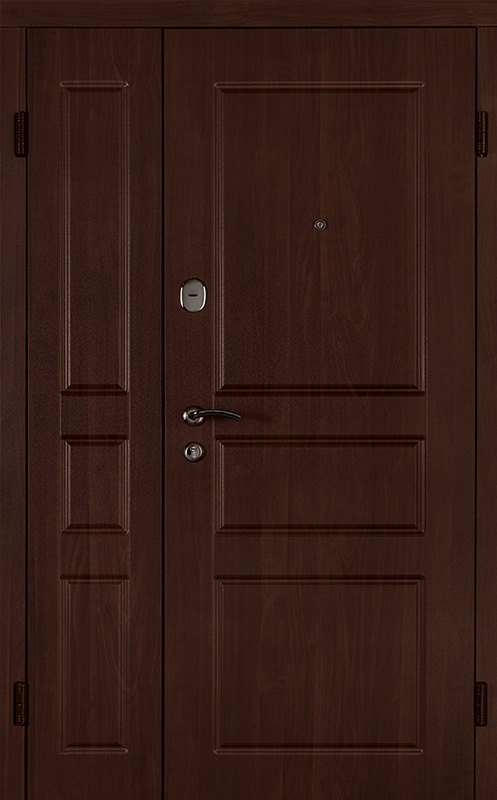 Коричневая входная полуторная дверь с филенчатой створкой №4 – это надежное и стильное решение для вашего дома или офиса. Внешняя и внутренняя отделка из МДФ с ПВХ обеспечивает долговечность и устойчивость к повреждениям, сохраняя при этом элегантный внешний вид. Прочные материалы конструкции, такие как профильная труба 50х25 мм и лист металла толщиной 2 мм, гарантируют стабильность и безопасность. Ребра жесткости из профильных труб 40х25 мм усиливают дверное полотно, а уплотнение с двумя контурами надежно защищает от внешних факторов. Несмотря на отсутствие терморазрыва, в двери реализованы терморазрывы в коробке и полотне, что помогает улучшить теплоизоляцию. Возможность выбора дополнительных опций, таких как шумоизоляция, делает эту дверь универсальной для различных условий эксплуатации. Коричневая входная полуторная дверь с филенчатой створкой №4 от производителя: быстрое изготовление и монтаж в Фрязино, индивидуальные размеры, широкий выбор материалов и фурнитуры, официальная гарантия до 10 лет.
