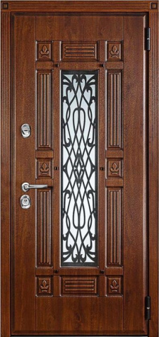 Сочетание надежной конструкции и декоративной выразительности делает входную металлическую дверь с ковкой и стеклом №20 удачным выбором для частных домов и коттеджей. Полотно собрано из профильных труб и усилено стальным листом толщиной 2 мм, дополнено ребрами жесткости и блокираторами, что обеспечивает прочность и устойчивость к нагрузкам. Два контура уплотнителя защищают от сквозняков и влаги, а по желанию доступна дополнительная шумо- и теплоизоляция. Отделка выполнена панелями МДФ ПВХ, стойкими к механическим повреждениям и перепадам температуры, благодаря чему дверь долго сохраняет свежий вид без потери эстетики. Особый акцент создают стеклянные вставки с коваными элементами, придающие входной группе парадность и индивидуальность. Такая дверь не только надежна в эксплуатации, но и подчеркивает стиль всего фасада. Входная металлическая дверь с ковкой и стеклом №20 от производителя: быстрое изготовление и монтаж в Фрязино, индивидуальные размеры, широкий выбор материалов и фурнитуры, официальная гарантия до 10 лет.