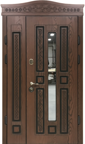 Входная дверь со стеклопакетом и патиной для загородного дома белая №29