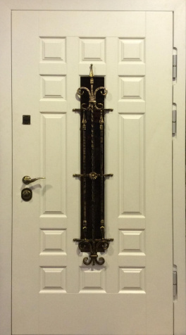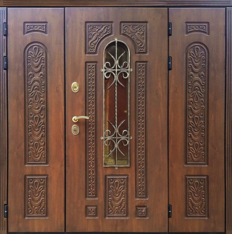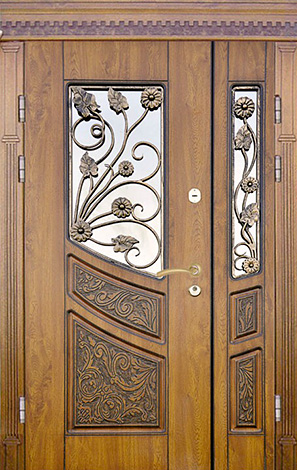 Большая выходная дверь со стеклом и ковкой №4 создана для тех, кто ценит выразительный фасад и надежную защиту одновременно. Эффектная вставка из закаленного стекла, дополненная изящной ковкой, превращает вход в дом или особняк в настоящую архитектурную деталь. Металлическое полотно усилено листом толщиной 2 мм и системой жестких ребер, что придает конструкции устойчивость к нагрузкам и взлому. Короб и полотно собраны из профильной трубы, а два контура резинового уплотнителя обеспечивают плотное прилегание и защиту от сквозняков. Для отделки использованы панели МДФ ПВХ — материал, который устойчив к влаге, царапинам и перепадам температуры, сохраняя внешний вид в течение многих лет. Такая дверь уместна в качестве парадного входа, где важна не только надежность, но и презентабельный внешний облик. Большая выходная дверь со стеклом и ковкой №4 от производителя: быстрое изготовление и монтаж в Фрязино, индивидуальные размеры, широкий выбор материалов и фурнитуры, официальная гарантия до 10 лет.