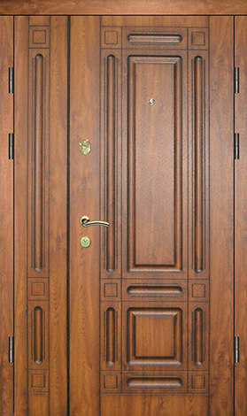 Дверь входная металлическая с стеклом и ковкой для дома №34