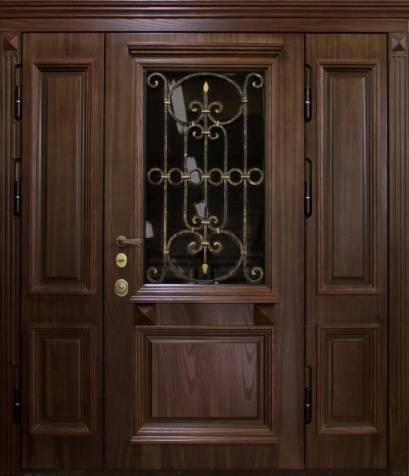 Входная металлическая дверь с порошковым покрытием, стеклом и ковкой в частный дом №27 — это не только надежность, но и стильное решение для вашего коттеджа или частного дома. Массив дерева, использованный в отделке снаружи и внутри, придаёт двери тепло и элегантность, в то время как прочная металлическая конструкция с профильной трубой и листом металла толщиной 2 мм обеспечивает долговечность и защиту. Стекло и кованые элементы добавляют изысканности, а порошковое покрытие защищает от внешних воздействий, сохраняя первоначальный вид. Терморазрыв в коробке и полотне помогает минимизировать теплопотери, а эффективная система уплотнения с двумя контурами гарантирует уют и тишину в вашем доме. Входная металлическая дверь с порошковым покрытием стеклом и ковкой в частный дом №27 от производителя: быстрое изготовление и монтаж в Фрязино, индивидуальные размеры, широкий выбор материалов и фурнитуры, официальная гарантия до 10 лет.