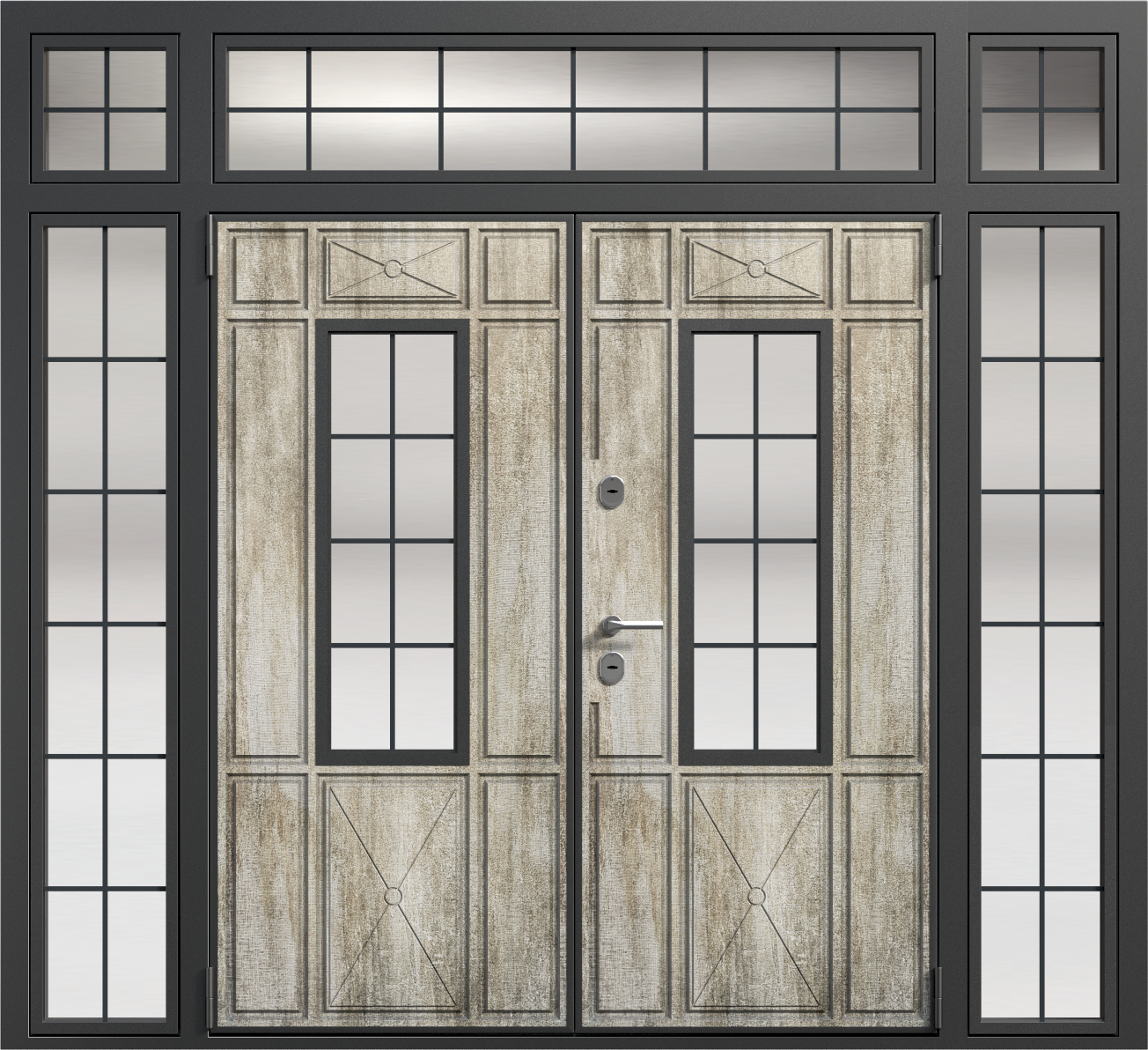 Парадная дверь с остекленной фрамугой №6 — это идеальный выбор для тех, кто ценит элегантность и функциональность. Внешняя отделка из панелей МДФ ПВХ обеспечивает долговечность и устойчивость к внешним воздействиям, что делает эту модель подходящей как для частных домов, так и для офисных помещений. Прочная конструкция с каркасом из профильной трубы 50x25 мм и листом металла толщиной 2 мм гарантирует долговечность и высокую безопасность. Замки Kale Kilit с тремя ригелями обеспечат надежную защиту, а уплотнение с двумя контурами эффективно защитит от шума и холода. Дополнительные элементы, такие как стеклопакеты, зеркала или кованые элементы, можно добавить по вашему желанию, позволяя адаптировать дверь под любые требования. Парадная дверь с остекленной фрамугой №6 от производителя: быстрое изготовление и монтаж в Фрязино, индивидуальные размеры, широкий выбор материалов и фурнитуры, официальная гарантия до 10 лет.